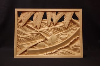 はじめ、この木製冷蔵庫のための彫刻の図は、「桜」、「波」、「富士山」など日本を連想させるテーマだったのですが施主である中澤氏と話をするうちに自然と決まっていったものです。