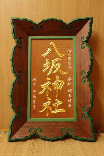 こちらは鳴雷神社の近くにある八坂神社の神額