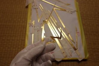 重なった部分の削り出しと余分な部分のカット、研磨作業の後に箔押し仕上げ。