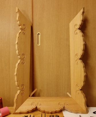 周りの彫刻をするため仮組みが済んでから一度バラした状態で受け取ります。