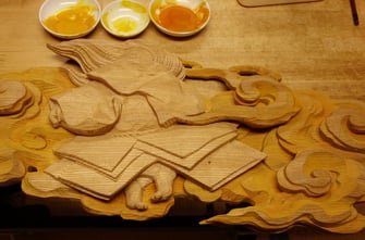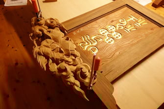 箔押しも縁が無い方が良いので、彩色師、指物師、彫刻と行ったり来たり。