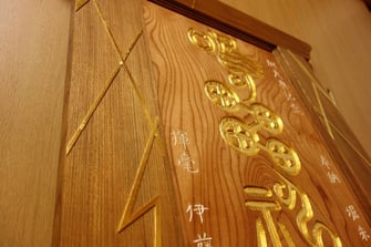 このケヤキの地板は木目が面白く、一目見て伊藤さんの字に合うなと思ったもの。これも縁のもので、良いものが見つかったと思います。